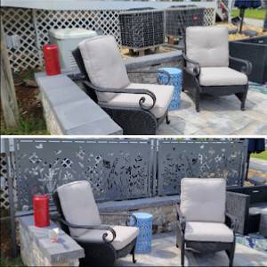 Un cliente escribió: "Great workmanship. Powder coating is flawless, all his designs are spot on. Great customer service, way to work with." Otro cliente dijo: "Beautiful finish on the powder coating for our custom metal privacy screen. Outstanding installation and attention to detail. Great work"